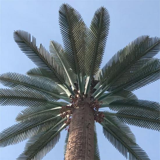 Camuflaje estético: Imita palmeras reales con hojas de polietileno (PE) resistente a los rayos UV y troncos reforzados con fibra de vidrio. Ideal para zonas con vistas panorámicas (playas, complejos turísticos, parques) donde las torres tradicionales resultan visualmente disruptivas.